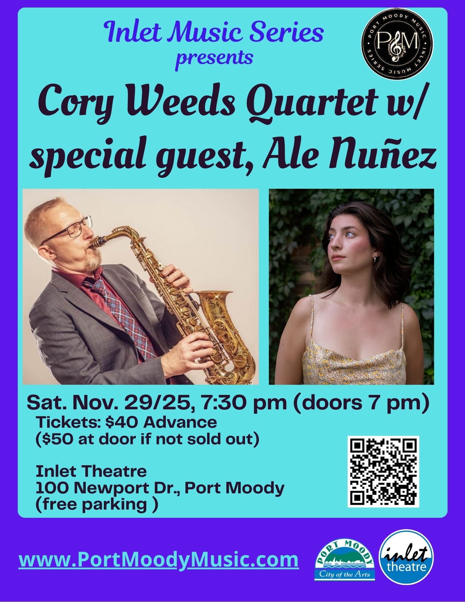 Inlet Music Series Presents: Cory Weeds Quartet w/special guest Ale Nunez